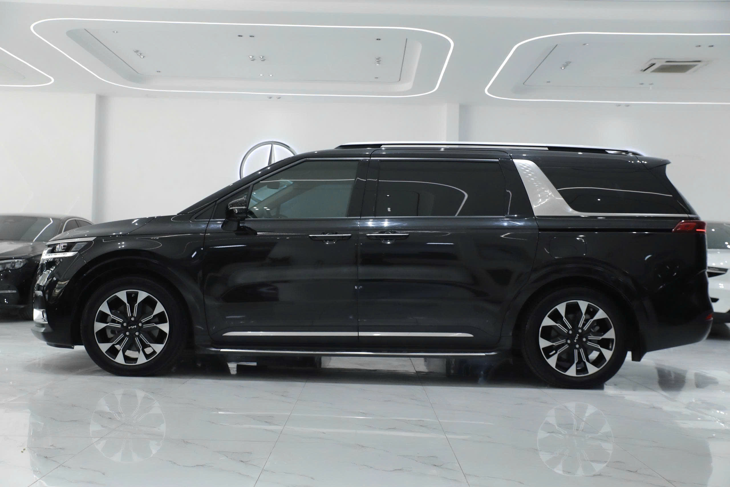 Kia Carnival Signature 2.2 2024 là phiên bản cao cấp nhất sử dụng động cơ dầu của dòng Carnival mới, mang đến sự nâng cấp toàn diện về thiết kế, tiện nghi và công nghệ, tiếp tục khẳng định vị thế “MPV hạng sang quốc dân” tại Việt Nam. Sở hữu ngôn ngữ thiết kế “Opposites United”, mẫu xe mang dáng dấp lai SUV mạnh mẽ, hiện đại hơn với phần đầu xe vuông vức, lưới tản nhiệt “mũi hổ” đặc trưng và tổng thể bề thế, sang trọng. Đây là bước thay đổi lớn giúp Carnival 2024 trở nên cá tính và cao cấp hơn rõ rệt so với thế hệ trước.